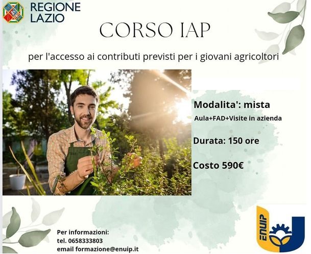 L’ENUIP organizza il corso di formazione di 150 ore per “Imprenditore Agricolo Professionale – IAP” autorizzato dalla Regione Lazio con Determinazione n.G06610 del 16/05/2023.